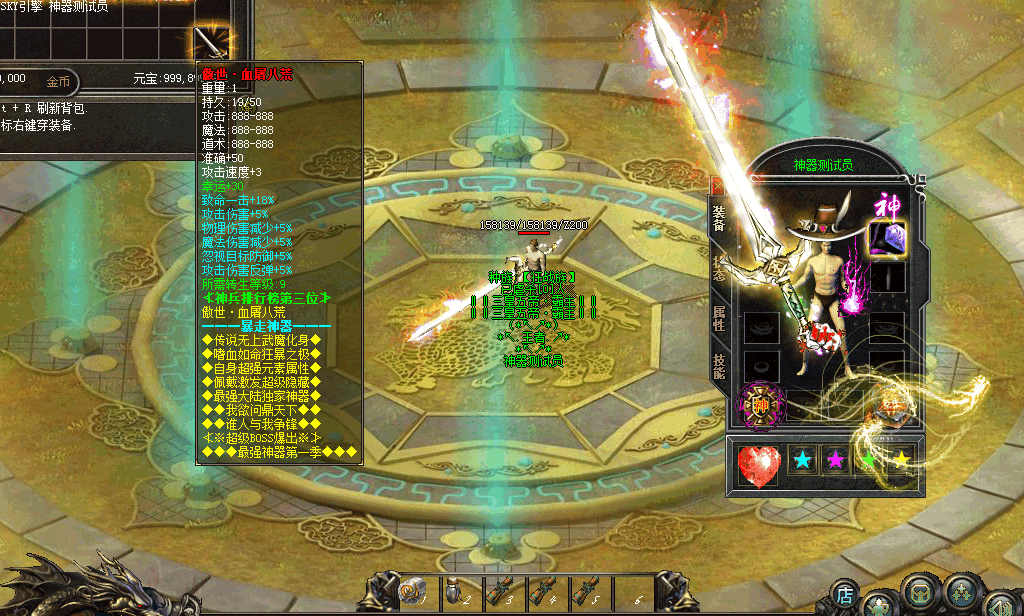 - 【游戏活动】:每天晚上22点20分复活点会刷一只神秘BOSS爆所有加星元素装备,请大家一定不要错过