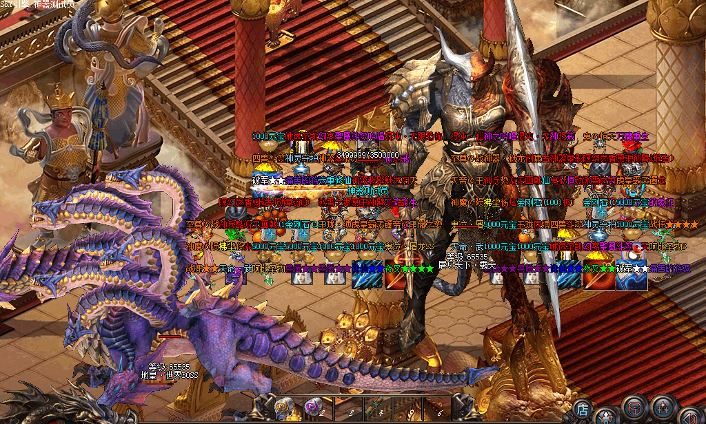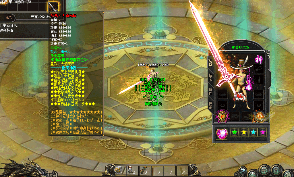 - 【老板玩法】:有了好装备直接去终极与次终极打,里面神器法宝BUFF项链 什么都有爆!