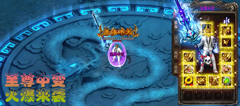 【游戏特色】 >> 本服套装十余套,散件上百件,神器超过20件,华丽与超牛逼的属性实在太多!