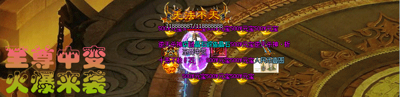 【游戏介绍】:元宝 1:5000000,点卡赠送百分之100% 网银赠送120% 多充多送神器好礼多多,本服无GM管理,游戏说是GM的都是骗子!