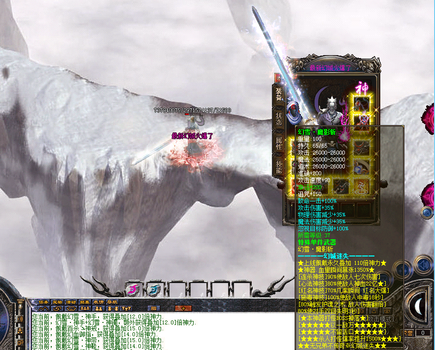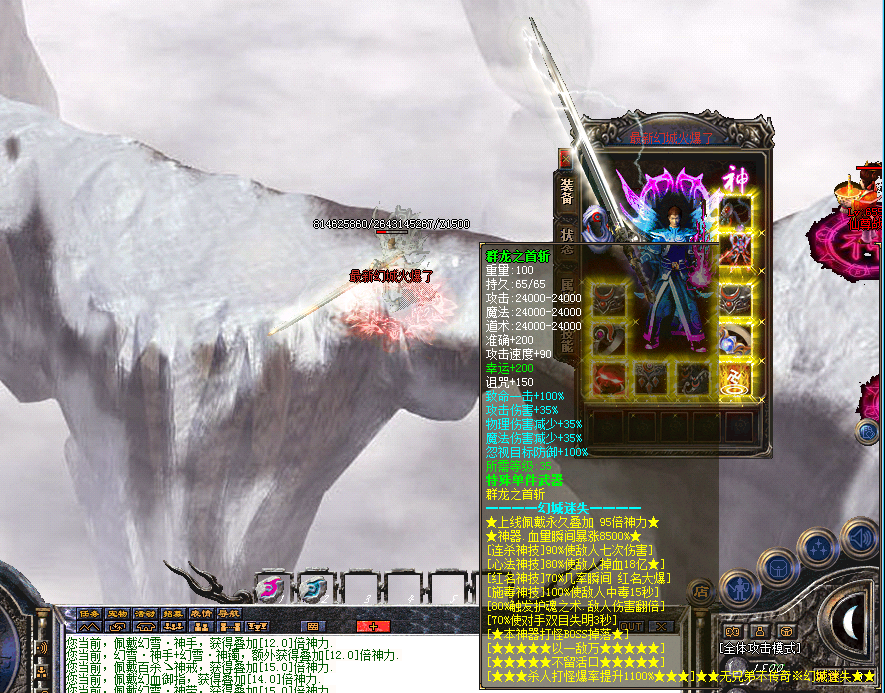 >>游戏介绍③:终极盾牌和终极项链在财富四层和散人十倍地图终极狂暴隧道爆出!屌丝玩家可以进入幻城妖塔 财富门 十倍爆率 去搞终极 当然搞到一定的转生就可以进入终极大陆,充值点,赞助点都可以打出来,兑换自己喜欢的物品。