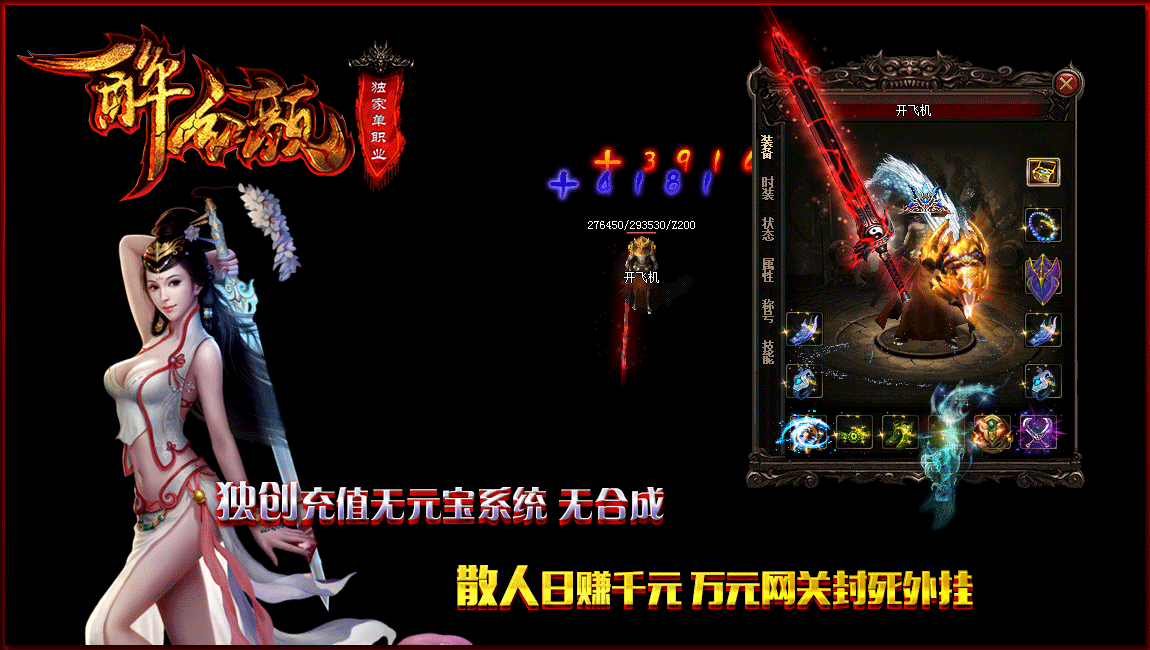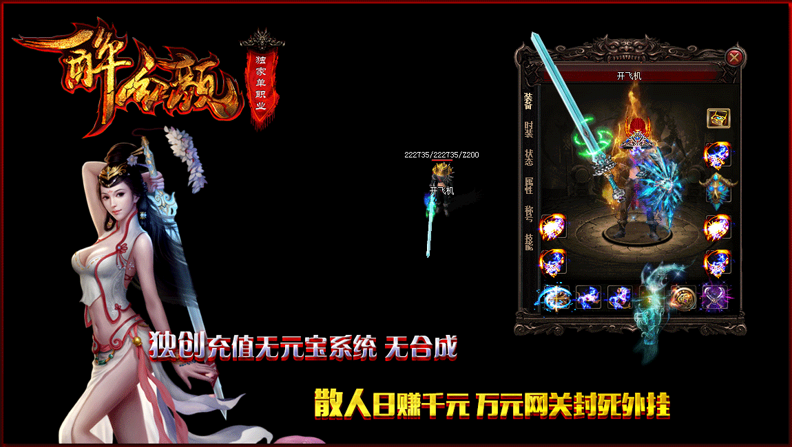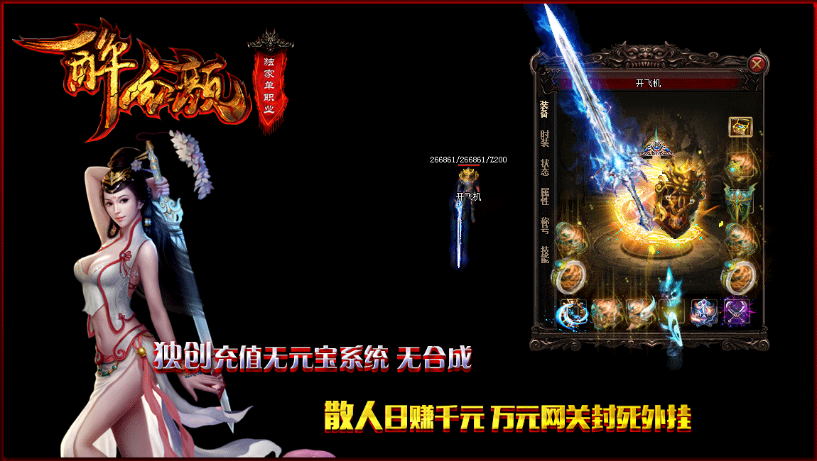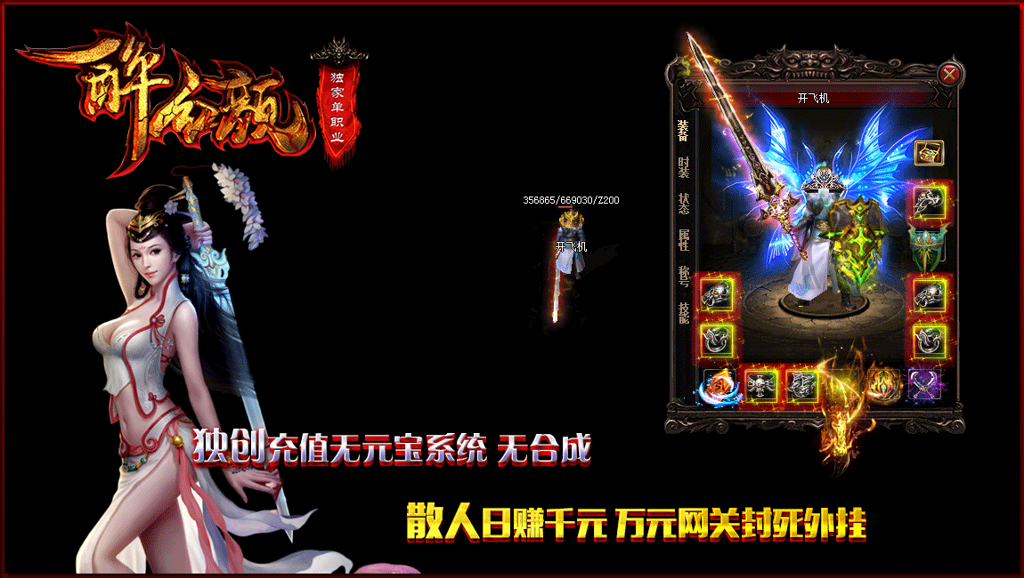 独创·无元宝,无合成系统。让装备保值,让散人玩家有奔头,让元宝更加保值,打金团队的福利!!