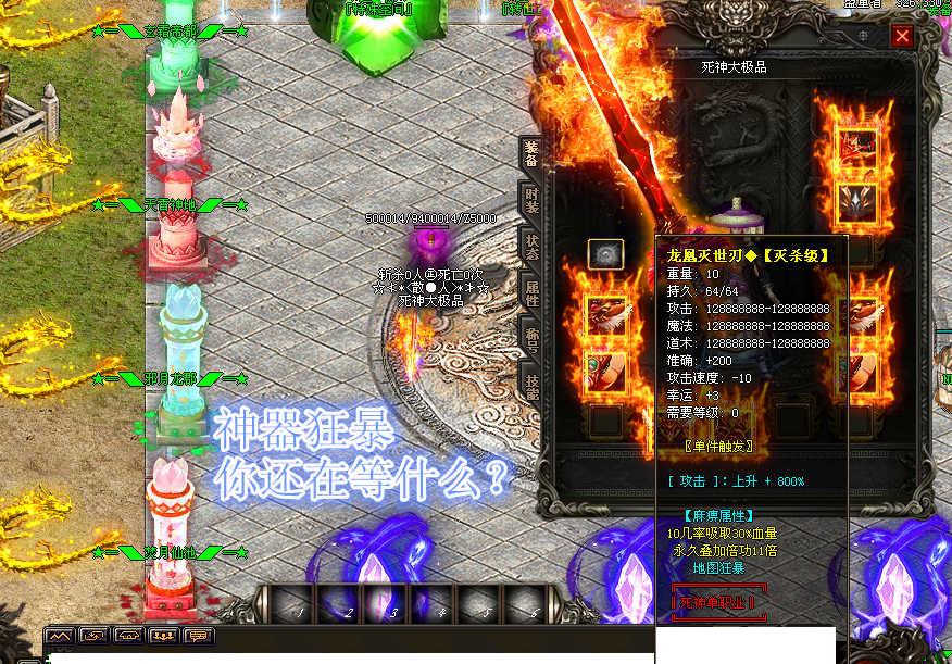 ⒊ >>增加了800-900级地图,散人打宝神地!具体进入方式进服体验,完全免费.