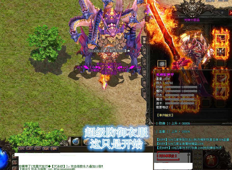 【版本说明】:海量广告宣传,保证人气,第二天晚上拿沙,新区奖励奖励1千万元宝+100万死神币+100人民币