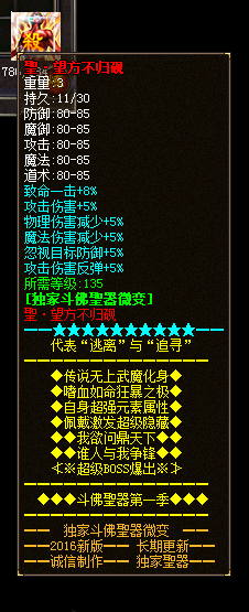 【版本说明】:本服独有的5大积分野外地图,狂暴积分,终极,神器,聖器!!