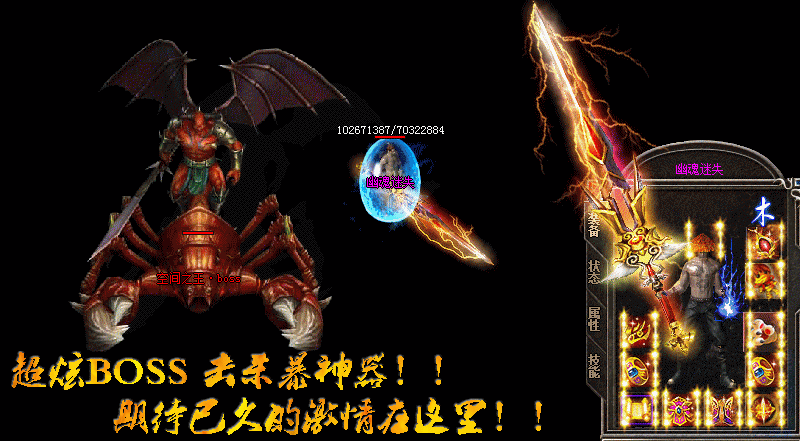 - 【魔族地宫】新增魔族地宫,进入此地图可以召唤,全服所有BOSS,全BOSS版永远打不完