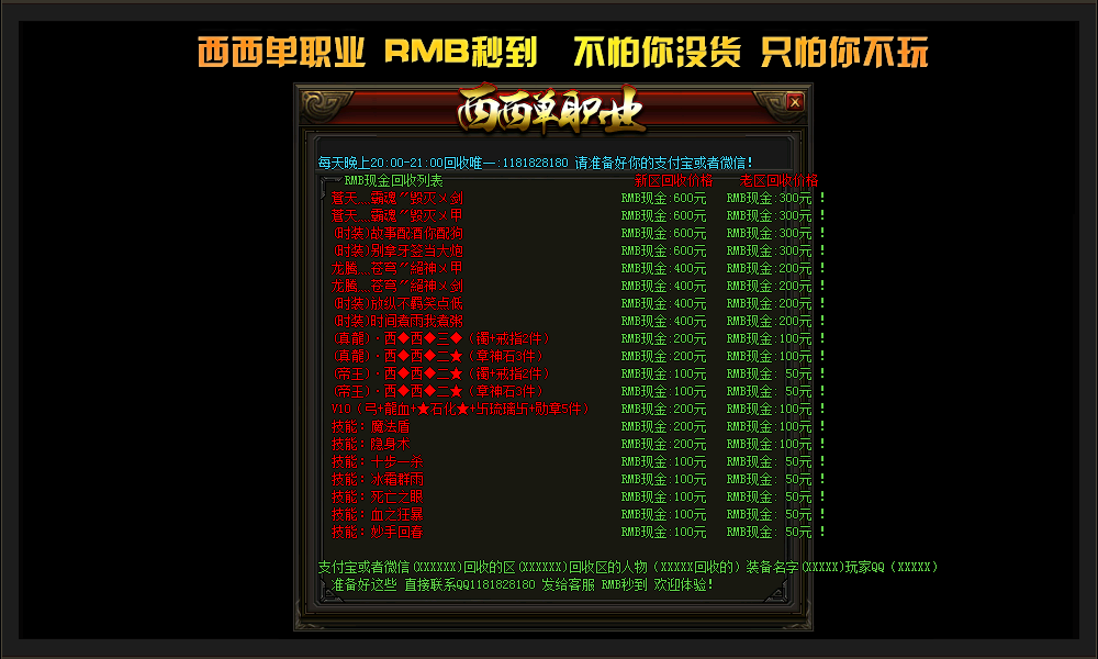 【工作】每天工作时间11:00 - 23:00 不谈比例、只负责处理游戏问题、回收RMB事项!!!