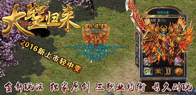 版本介绍:最新2016猴年独家轻中变结合版本版本,独家升级,游戏乐趣更多,适合散人团队发展。