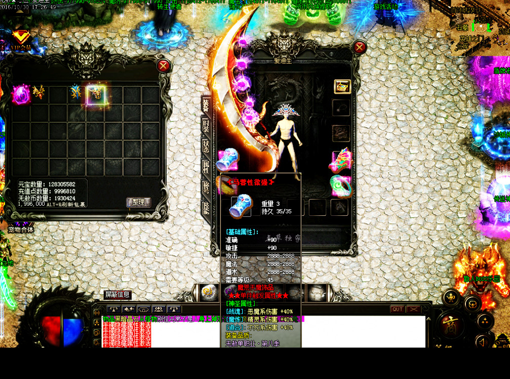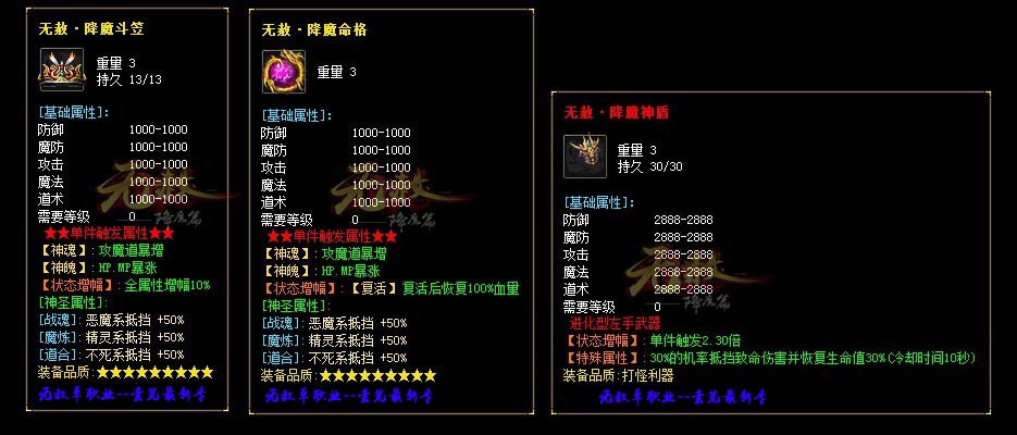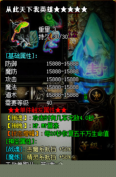 1.【装备更新】:加了3套装备 特殊装备加了3套 BUFF加了3套 时装更新3套