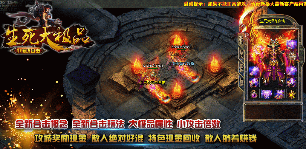 - 综合游戏介绍① >> 本服为最新大极品合击,小攻击倍数,耐玩刺激,激情无限!