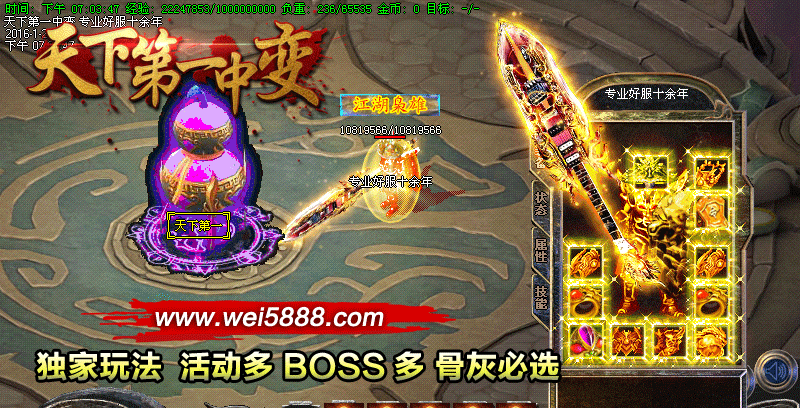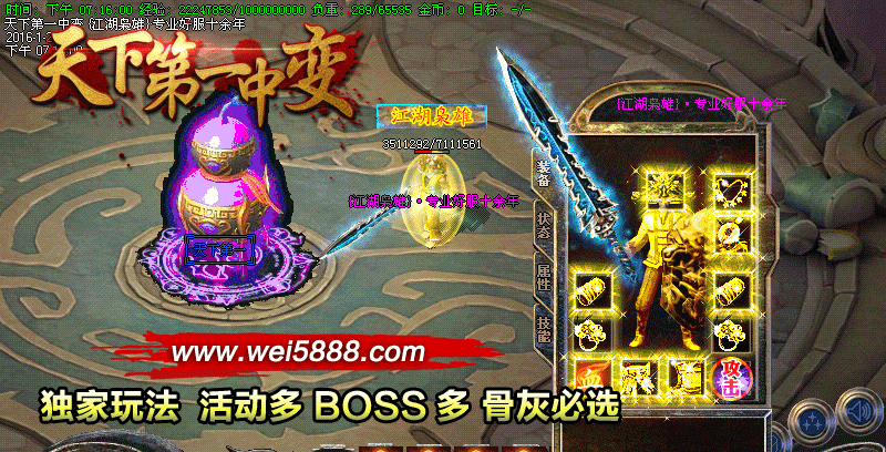 【关于装备】:装备全部打怪获得,无合成,无出售!抢BOSS,守BOSS让你乐趣无穷!