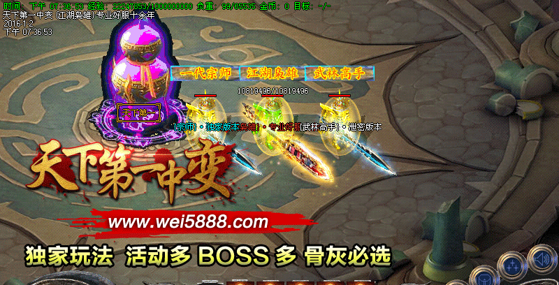 【关于升级】:本服前期等级好升,泡点,打经验丹,各种方式组你快速成长,让你省去了枯燥无味的泡点等待,拥有更多的时间去享受打装备,PK,抢BOSS的乐趣!