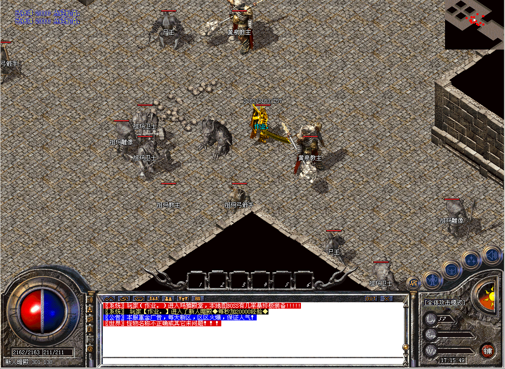 新手上线可以到新人暗殿打祖玛回收(祖玛爆率较高,带泡点经验),考虑到现在玩家每日在线时间较少原因,服务器加入在线泡点(泡点升级相对其他方式升级消耗元宝多),祖玛以上装备加入拾取鉴定功能(个个都是小极品),加入七龙珠,可以获得大量经验或元宝,BOSS超级多,不花钱一样牛B!