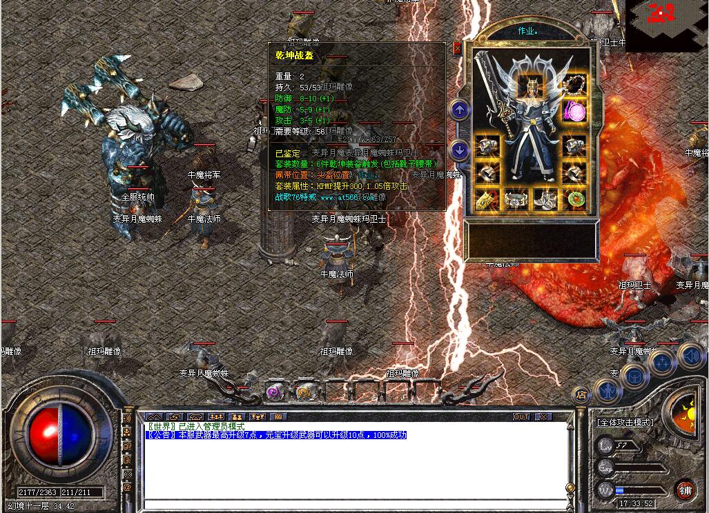 【特别说明】:本服装备祖玛装备→赤月装备→黄金赤月→紫金赤月→乾坤装备→强化乾坤装备→御龙装备,怪物全可爆出!