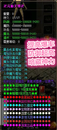 装备全部靠打(看脸),无任何合成!所有装备即可爆出.!!!!!!!
