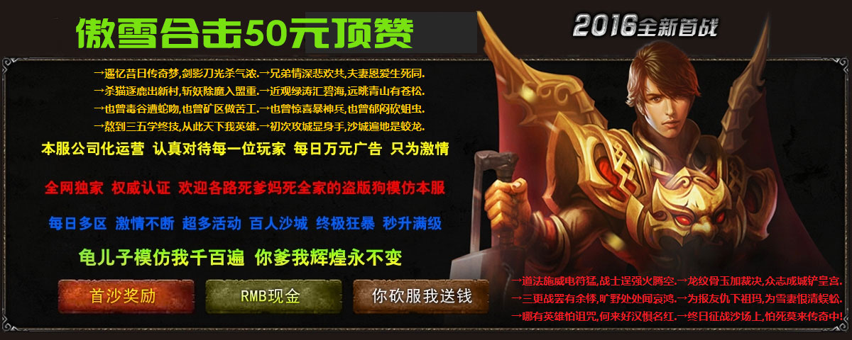 ★开区3天合区后攻沙奖励【1000RMB充值卷】元区天天攻沙奖励【100RMB充值卷】★