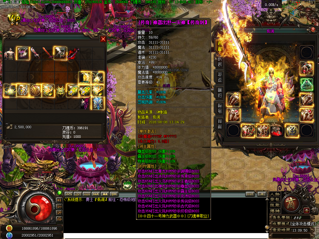 【攻沙奖励】:开区第二天合区拿沙,新区奖励2000万随机一件终极装备,老区奖励1000万随机一件终极装备!