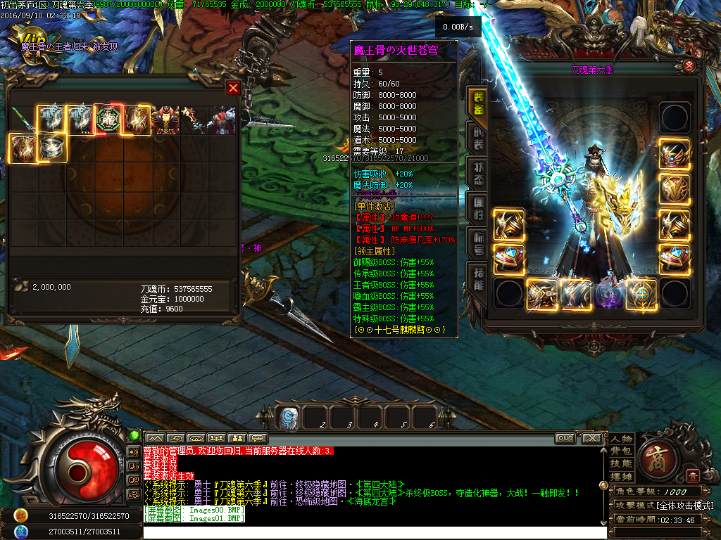 【版本说明】:2016散人单职业,{刀魂第六季}全新改版,真实百元满回馈!!!