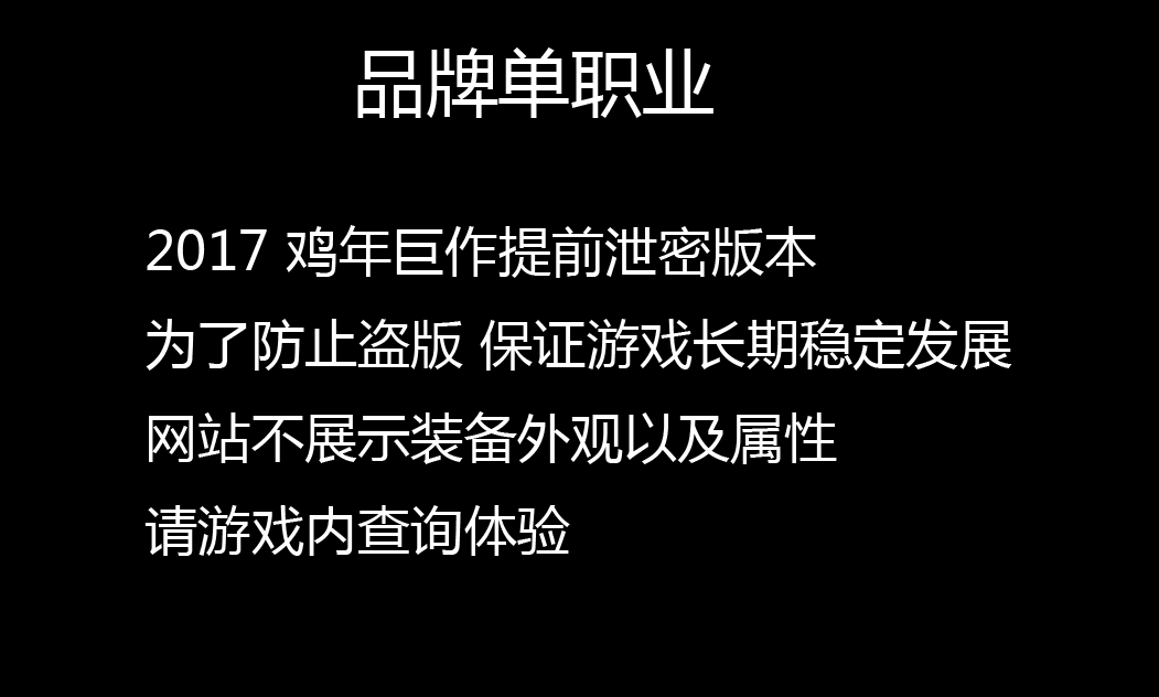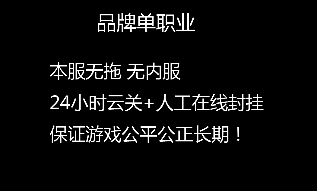 【版本说明】:历时六月打造,2017年终最具特色单职业版本,全部装备靠打,所有装备0级佩戴,打到就是赚到,真正散人服。! 【充值比例】:元宝点卡比例1:25000,网银多送100%点卡95%统 无任何在线管理或元宝代理,请玩家谨防上当受骗。 【游戏特色】:彻底封死外,无加速。所有装备爆出,憋尿打宝,屌丝逆袭女神。 【游戏介绍】:独创打怪模式,全图刷BOSS,调整所有分区爆率,激情耐玩。 【游戏介绍】:地图多,BOSS多,新大陆,特色副本等独家玩法等你挑战! 【游戏介绍】:地图多,BOSS多,新大陆,特色副本等独家玩法等你挑战!
