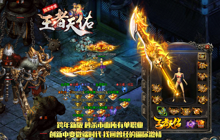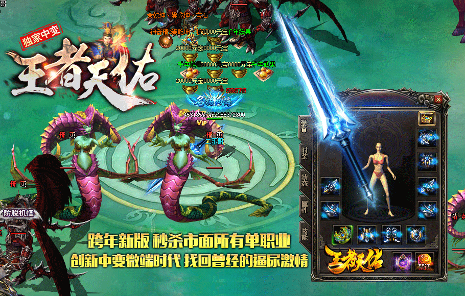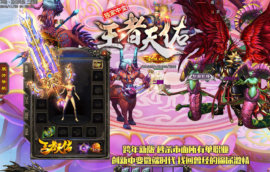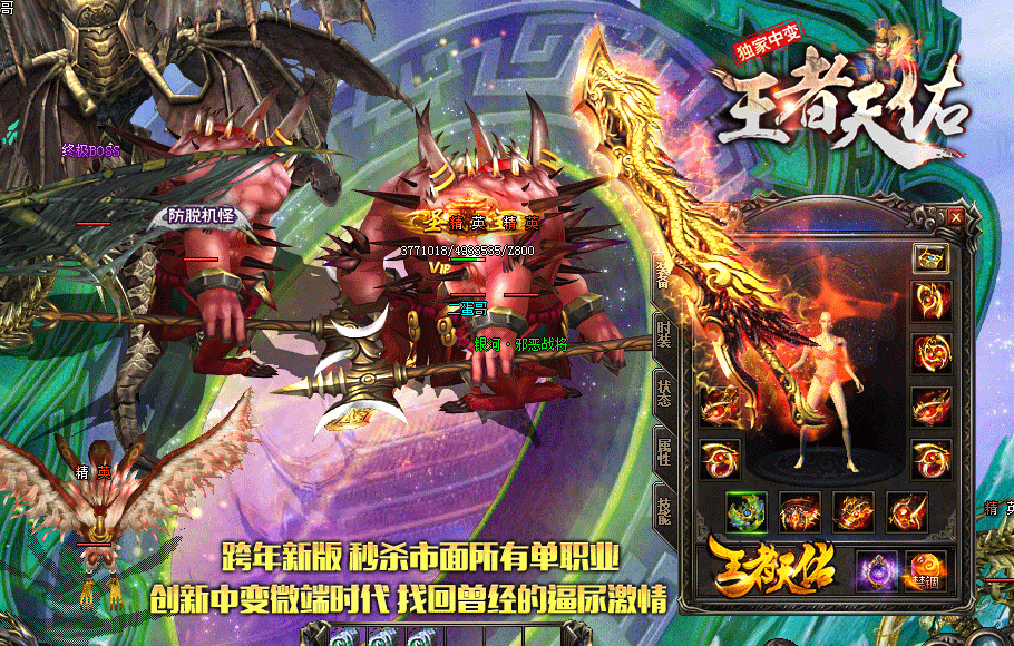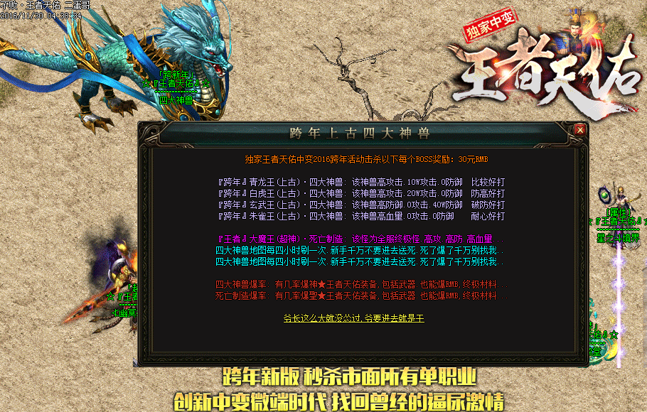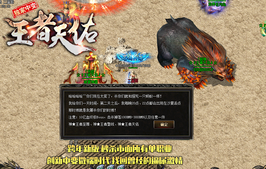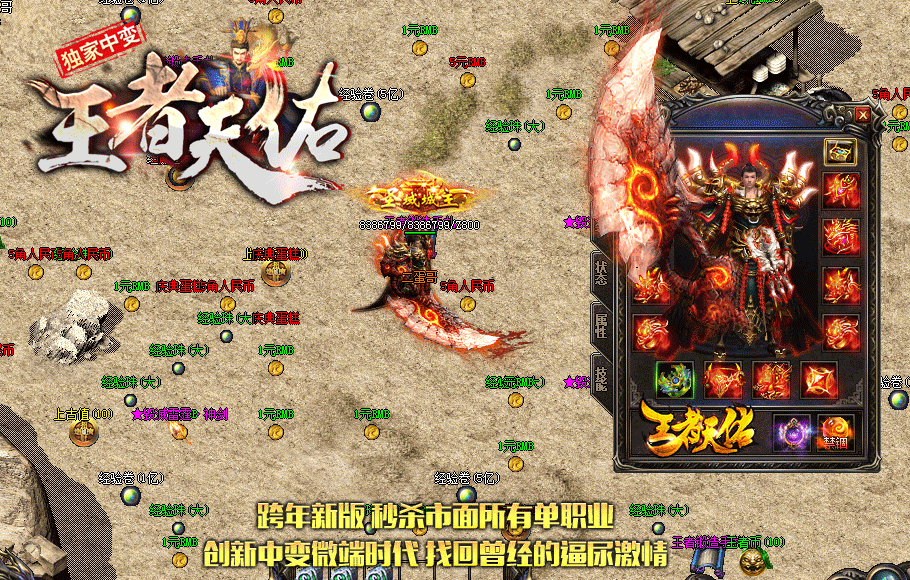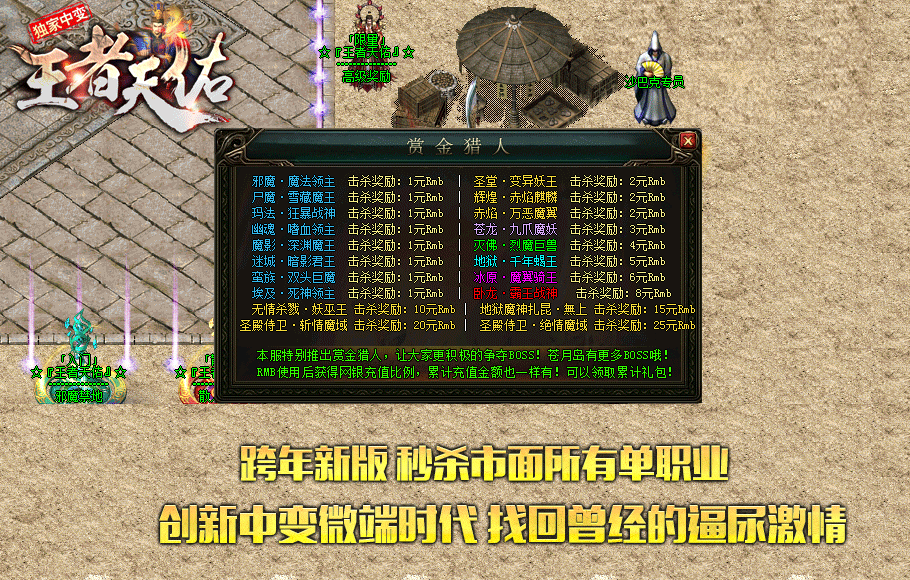 - 【游戏描述】:独创打怪模式,全图刷BOSS,调整所有分区爆率,激情耐玩!