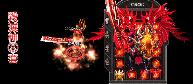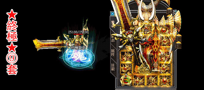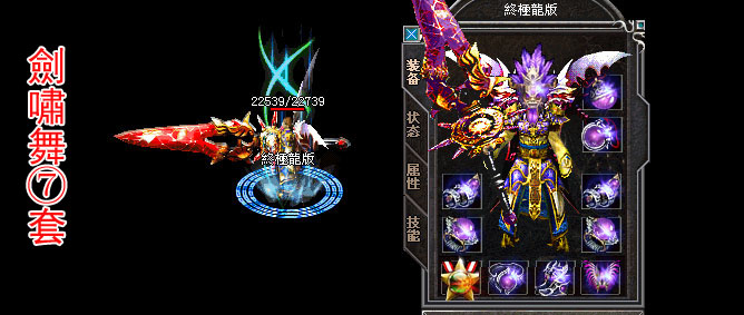 青龙①→白虎②→狂龙③→天罡④→血煞⑤→霸剑⑥→劍嘯舞⑦→毀滅神⑧→★終極★⑨