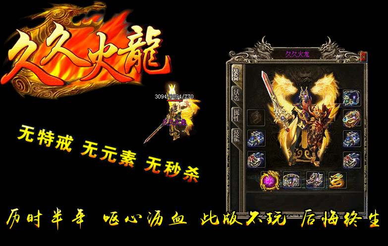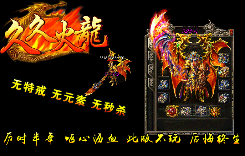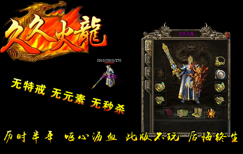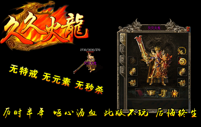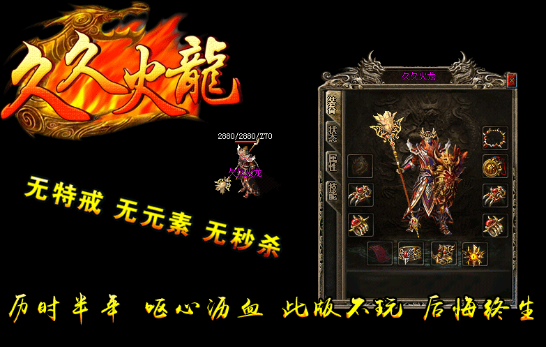 【版本介绍】:久久火龙复古....实力打造,2016年全新、独家、经典、好玩,活动多,福利多,特色多,超级好玩,装备保值!