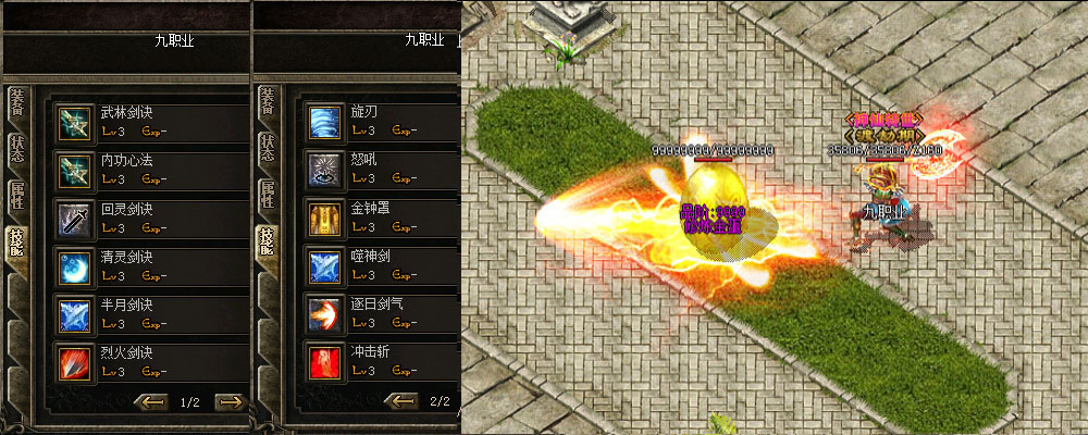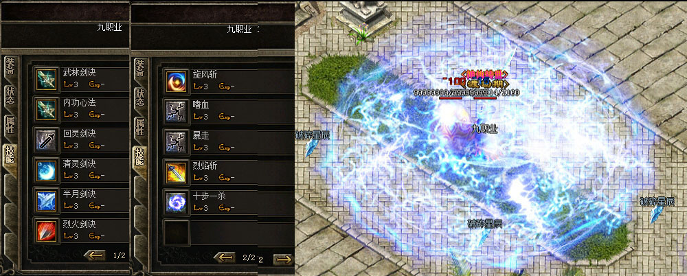 职业技能每个都很强悍.噬神剑.逐日剑气.冲击斩等技能都攻击力显著.