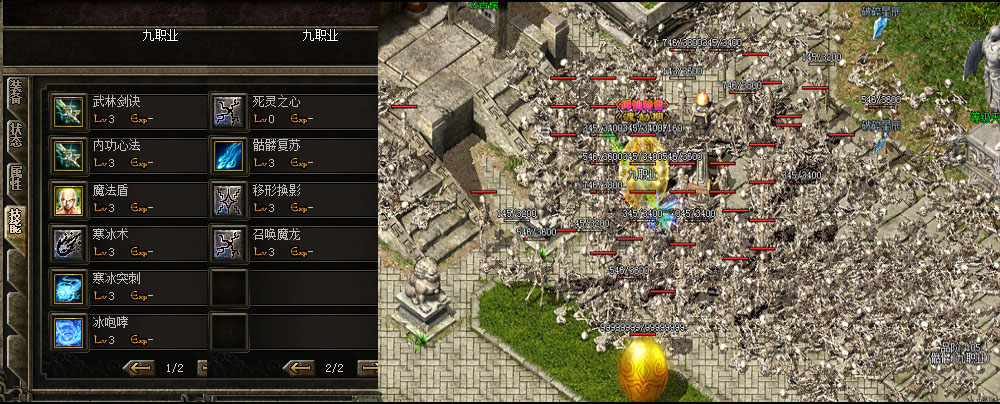 骷髅复苏.可召唤5具骷髅帮助自己作战.骷髅的属性跟人物的属性一模一样