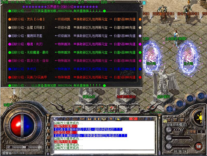 重点活动:只要你有对应的装备充值平台留言给我!换区新区礼包!注:本服BOSS不像别的服那么容易打