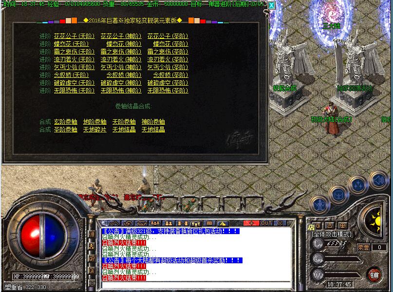 这里我说下玩法:人物上线直接送打怪BB.散人直接新手地图打元宝转身.等级。然后一步一步进入新大陆发展!
