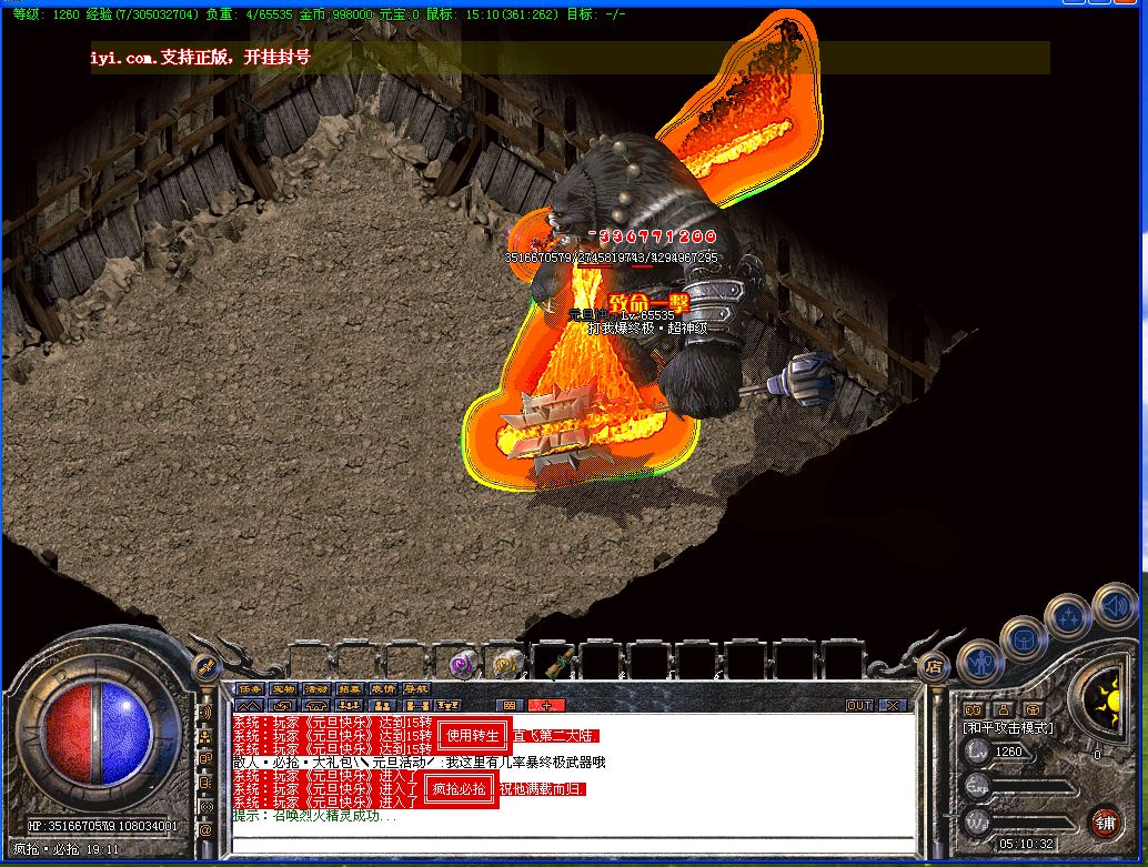 散人上线泡2个号领在线奖励,领到防BUFF盾,就可以满地图找BOSS打了,本服6W级以上怪都会爆终极。