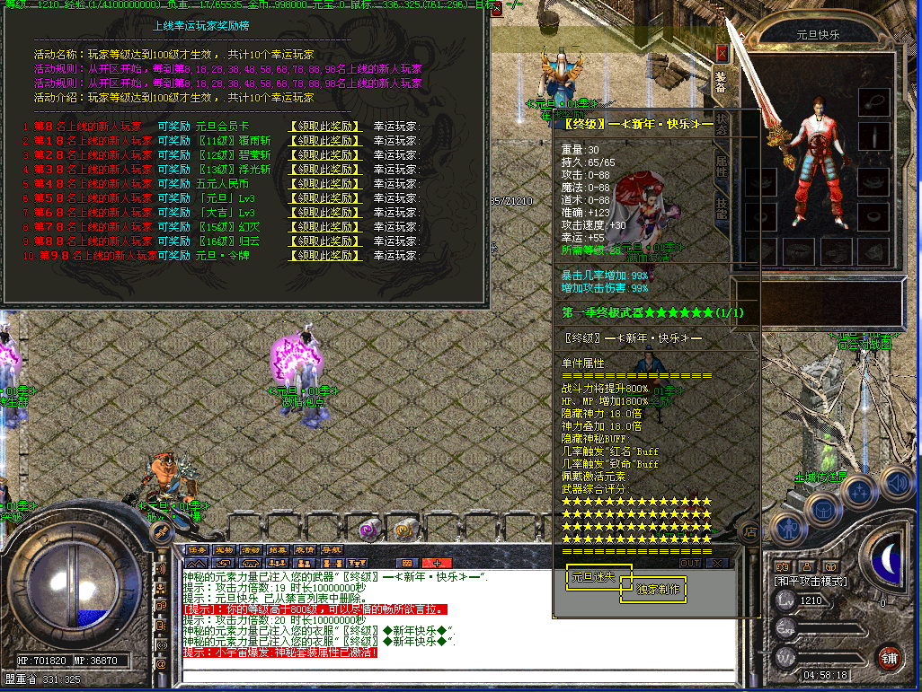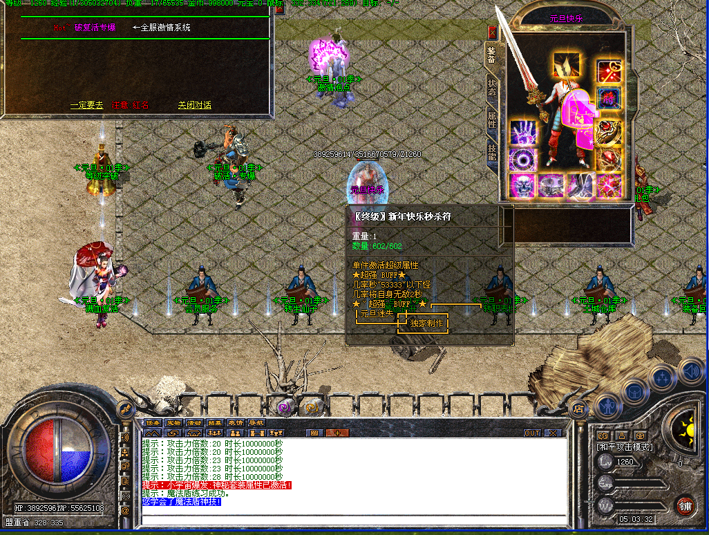 元旦欢乐多,每2个小时刷新一只 欢乐使者 必爆4级烈火和超神丹!!!
