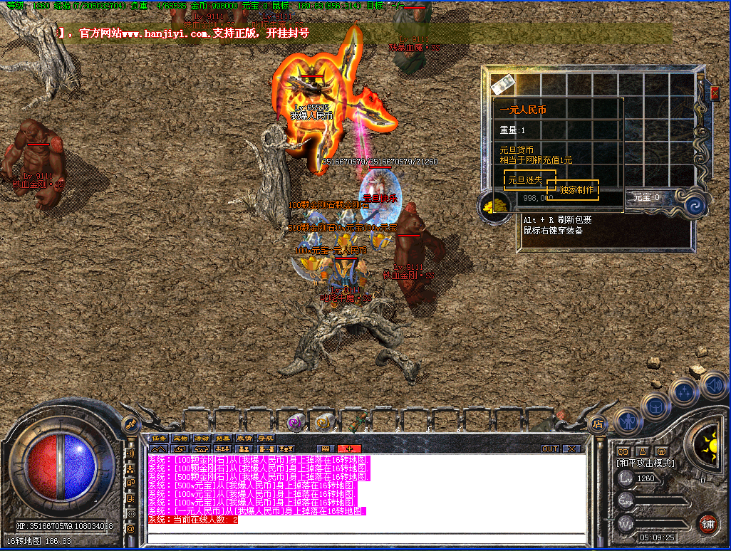 每个地图刷新我爆人民币,一个相当于网银充值1元!