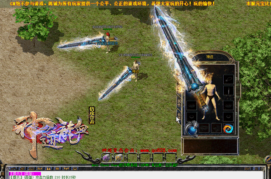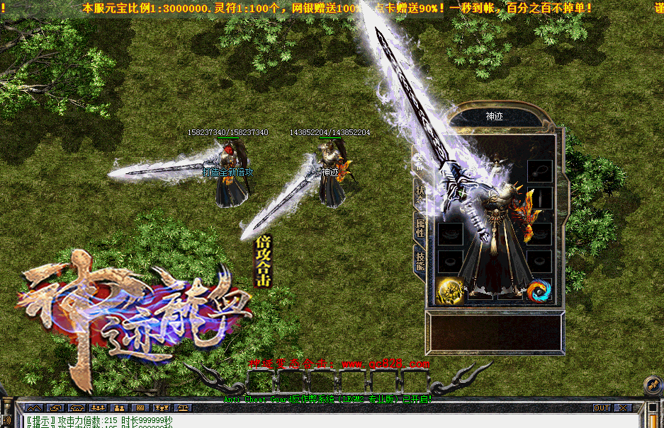 - [战神]鏖战天下 170倍 注! 可鉴定倚天劈地技能+5%的合击威力.