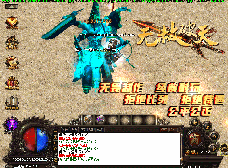 15-20层开始奖励充值,超爽。15层以上BOSS必爆超级装备。20层必掉终极。 |