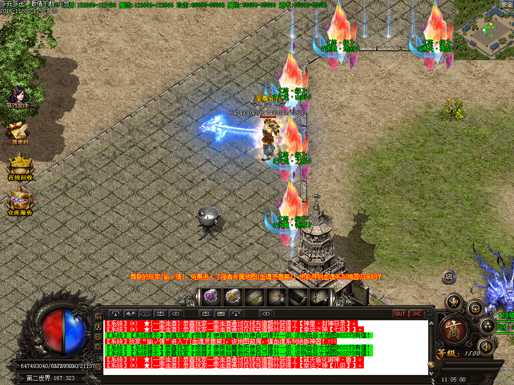 【游戏介绍】:完全散人设置,无垃圾怪物,上线就开始狂搞BOSS,装备、材料100%会爆!