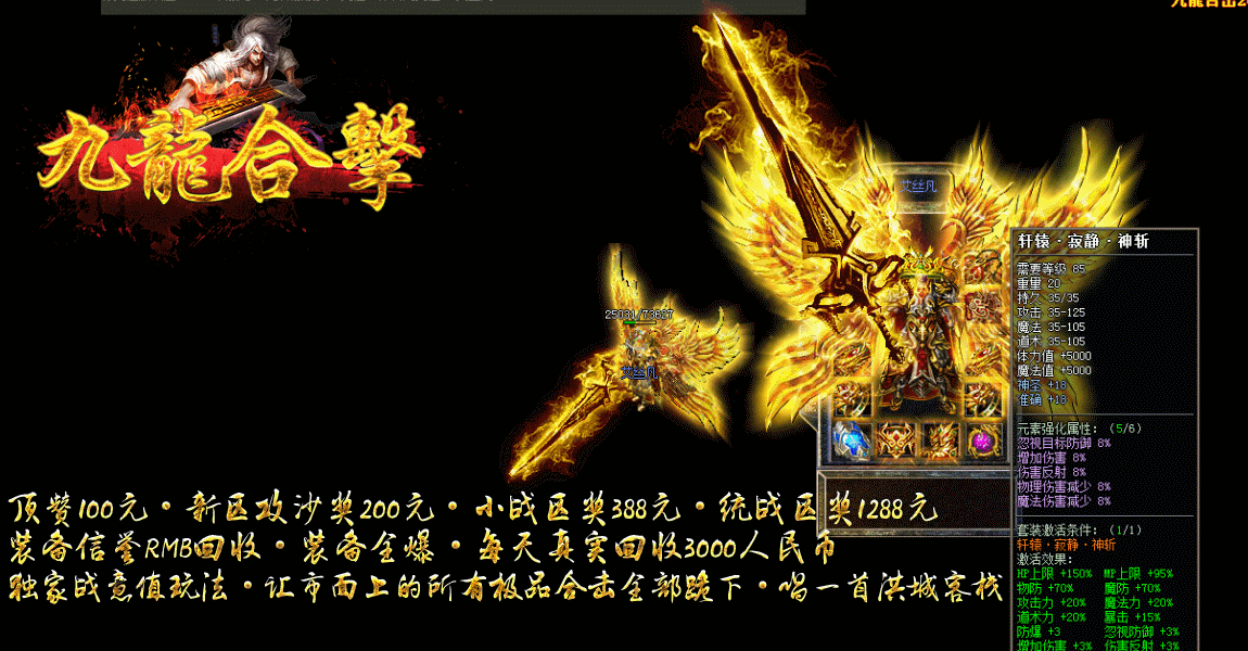 - 【全民夺宝】新区开放60分钟后,开启全民夺宝活动,地图爆出大量充值卷,散人超好混