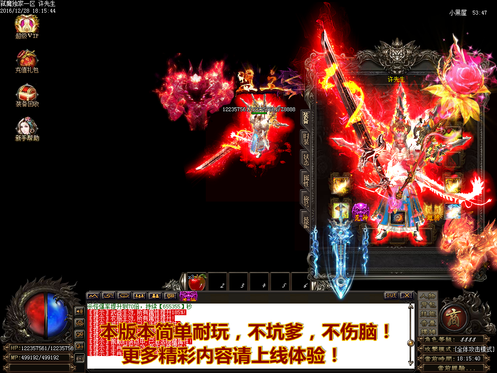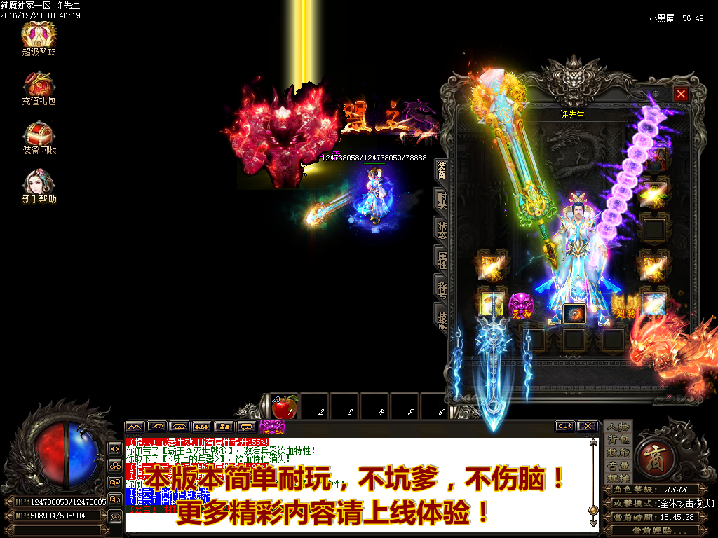 - 2016-6-18【新闻】无充值回馈.礼包.冲值奖励.所有装备全部靠打.真正为散人打造.