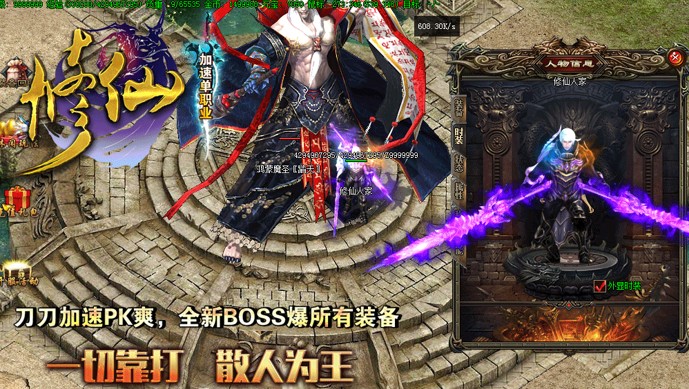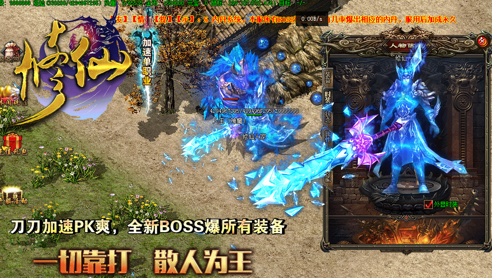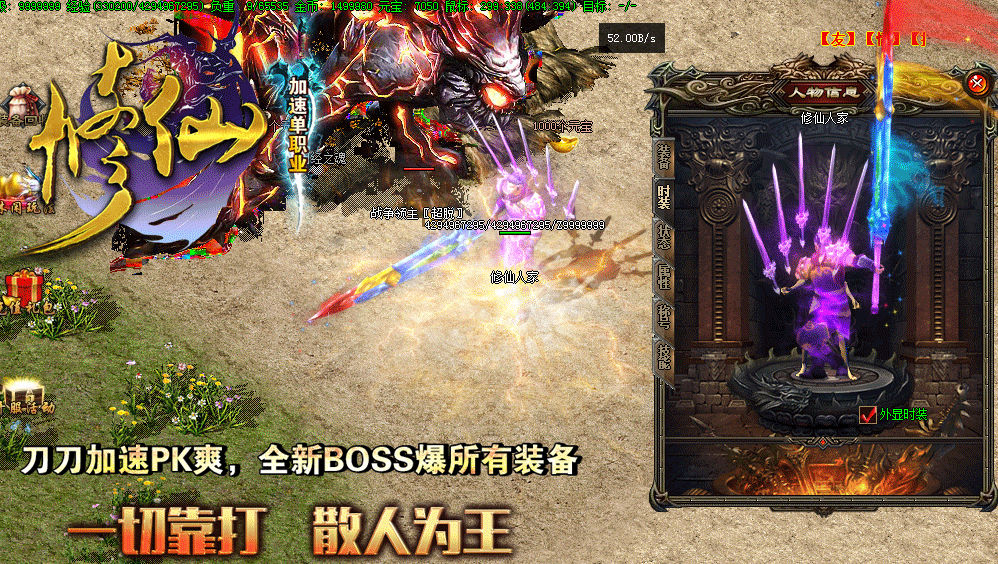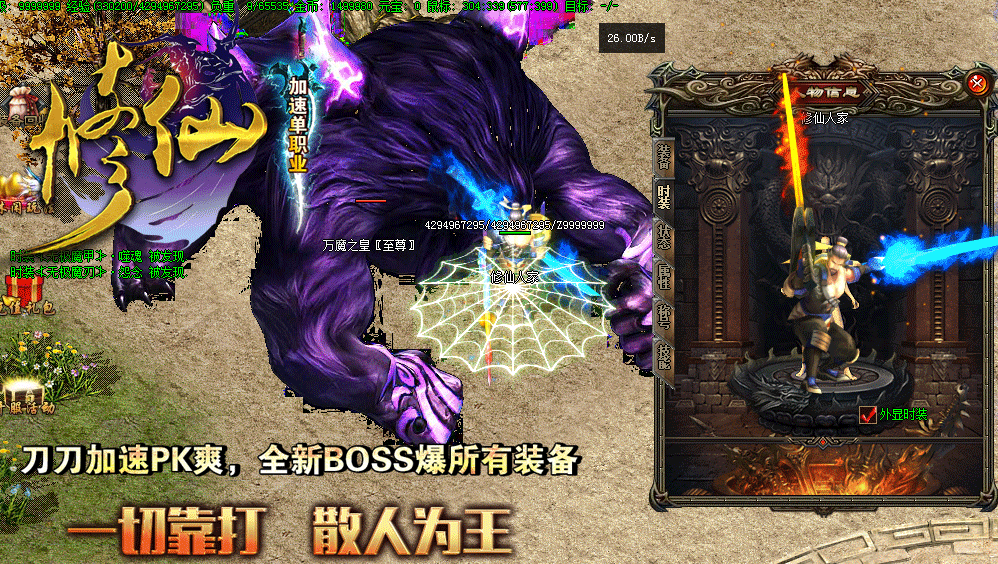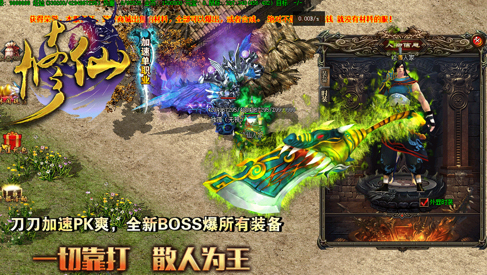 • 【版本介绍】本服所有装备全部靠打,所有BOSS均有终极爆率,屌丝也可以逆袭。