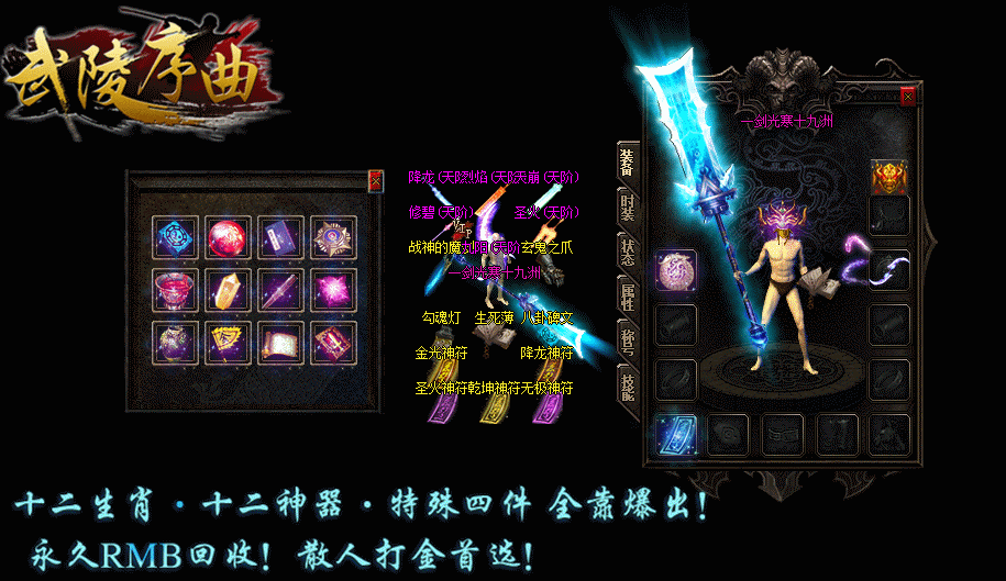 - 【游戏介绍】:不变态.不秒杀.所有装备均靠打.商铺不出售任何装备.全靠爆出!怪物血量越高越爆!