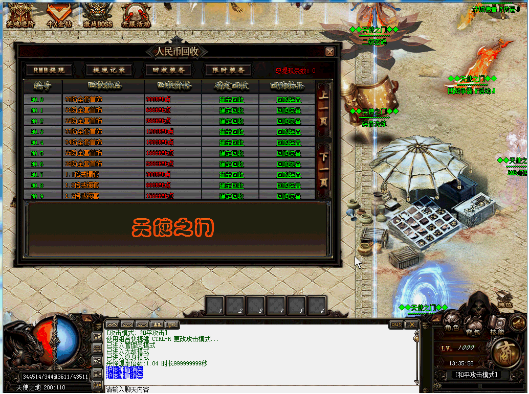 - 【版本公告】:1:6000元宝 80天使币 (网银赠送100% 点卡赠送80%)