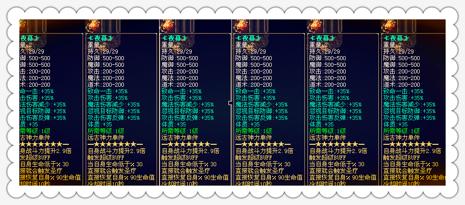 【大部分装备全部附带BUFF功能与特殊属性】