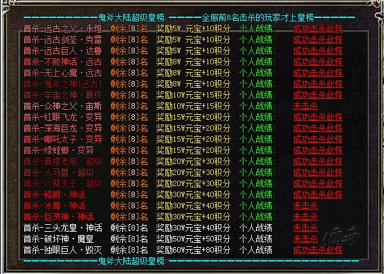 新推出首杀奖励,杀BOSS奖励RMB和海量元宝!