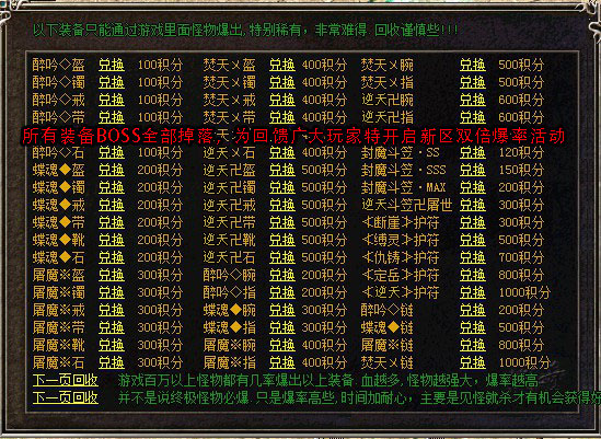 逆天传奇火热新区开放,特推出新区2倍爆率活动!