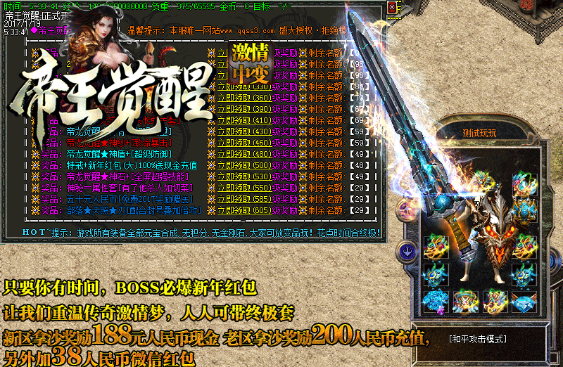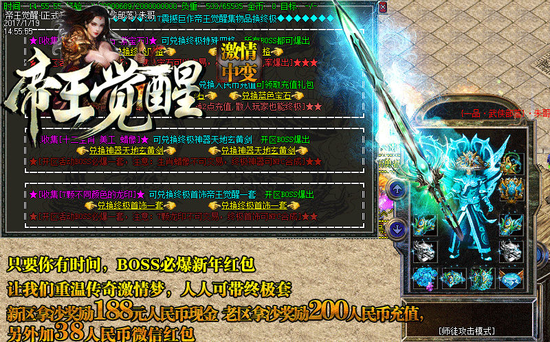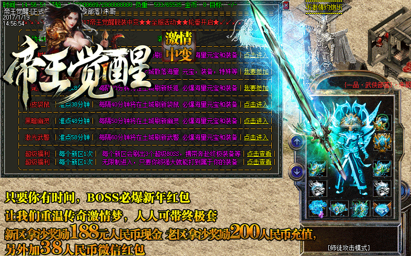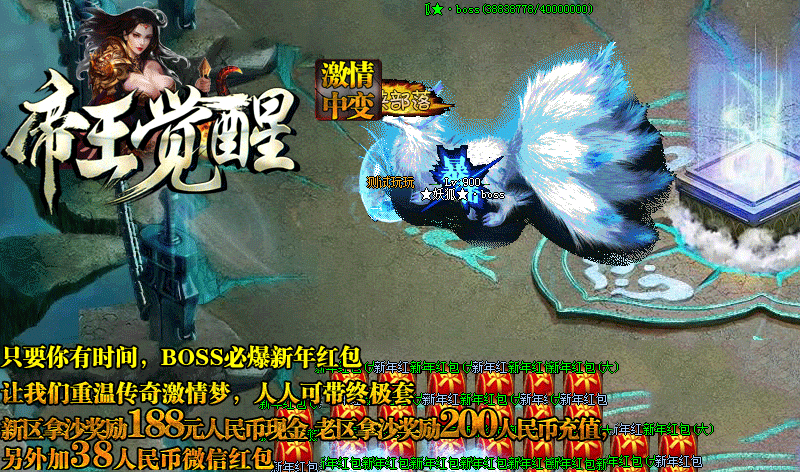 5. 【拿沙奖金】: 全民哄抢,新区每10分钟刷出BOSS,必爆终极装备和新年红包以及材料!!!!