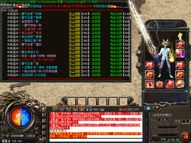 - [游戏介绍]新区第二天中午合区拿沙 奖励RMB 游戏中查看