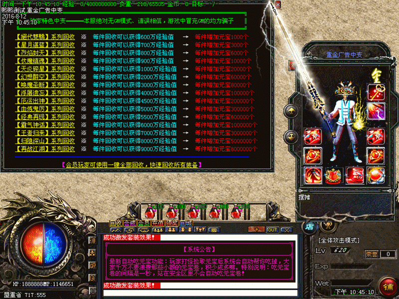 - [游戏介绍]充值1:500万元宝 点卡网银赠送100% 公平公正!