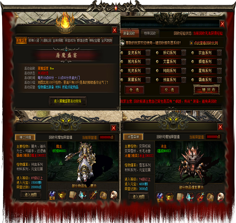 1)地图全BOSS模式 装备全部爆 上线干BOSS;