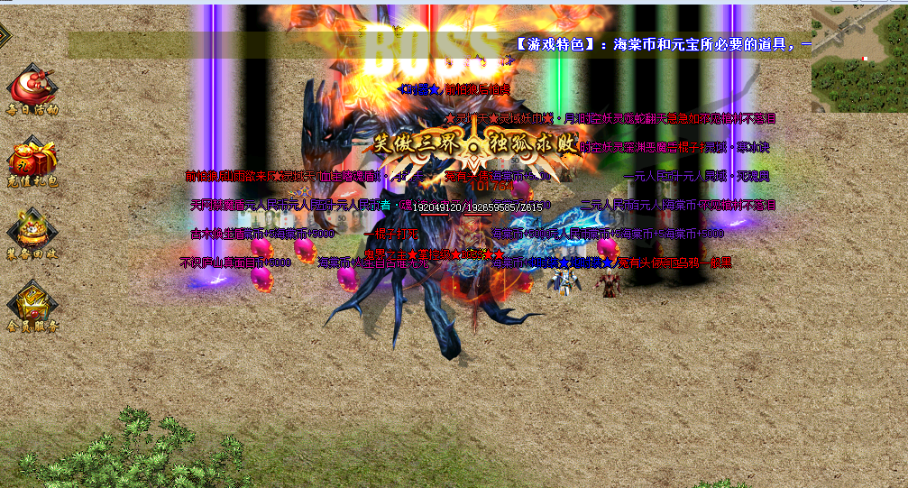 【版本说明】:上线500级,回馈礼包一自己领取.可以打任何BOSS物爽歪歪!