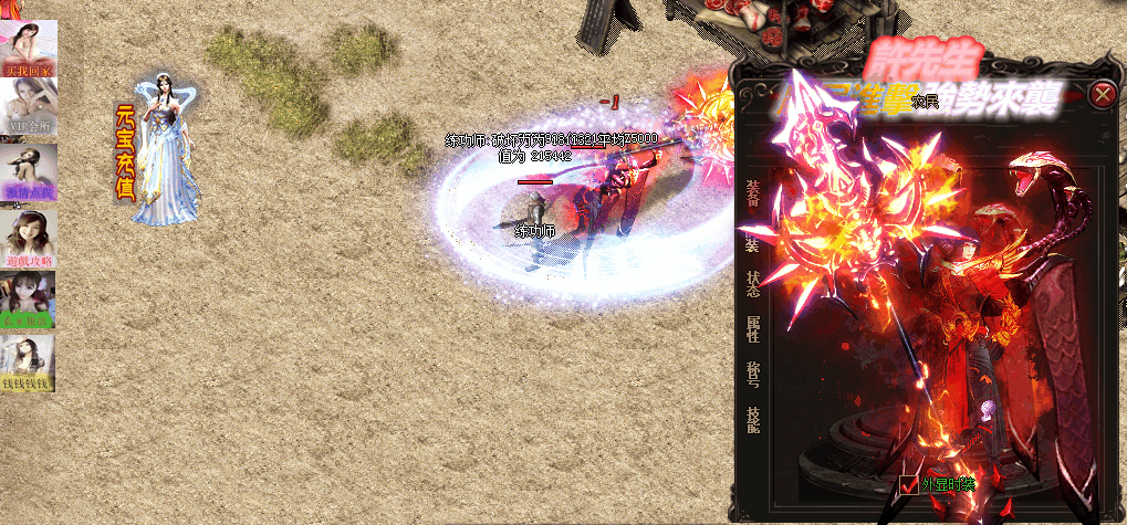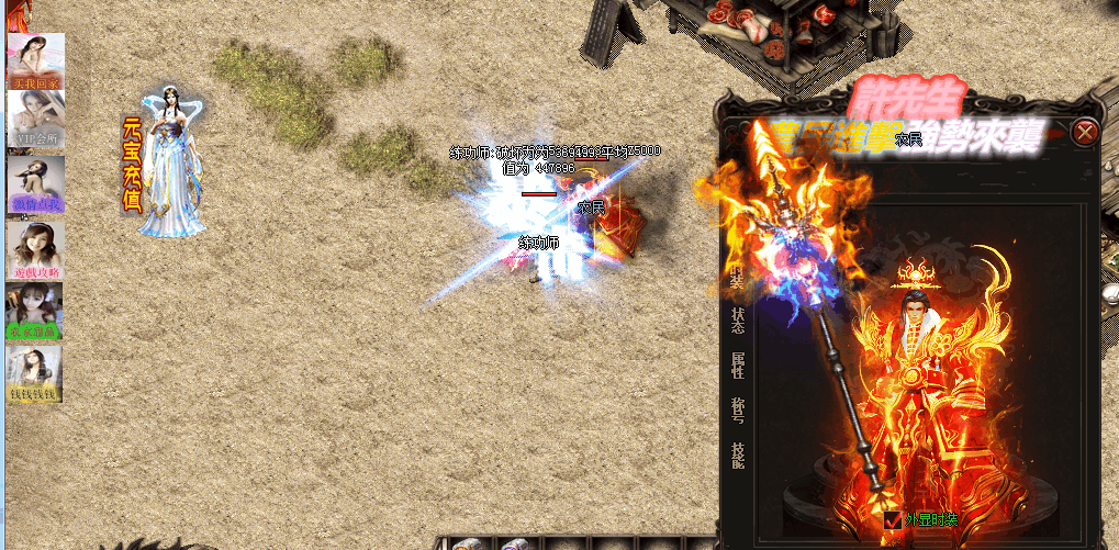 - 【游戏介绍】: BOSS掉落现金红包.野外BOSS.世界BOSS.RMB狂暴等更多丰富活动,装备全爆,元宝狂暴,